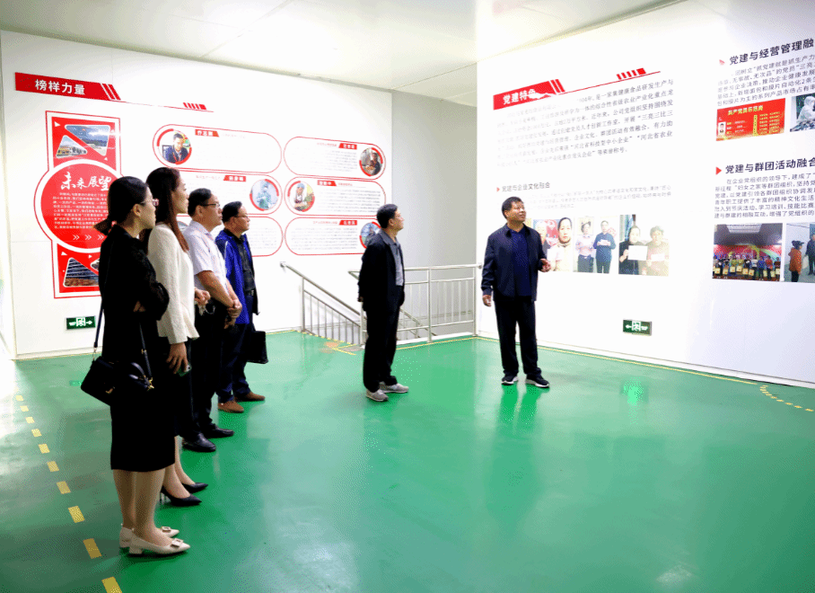 签约仪式前,在河北马家麦坊食品有限公司董事长马建刚的陪同下,王俊昆部长一行考察了公司现代化生产流水线和产品展厅,在考察过程中,马建刚董事长对公司的发展历程、文化建设、产品种类、厂房运营进行了详细的介绍,嘉宾们对公司的战略目标、未来的发展规划以及对社会经济的贡献给予充分的赞赏。